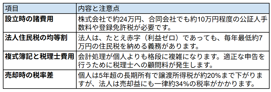 法人化には多くのメリットがありますが、所得が低い段階で無理に行うと、法人の維持コストが節税メリットを上回ってしまう「法人化貧乏」に陥る可能性があります。