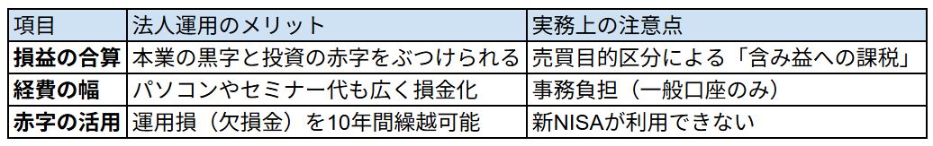 法人が投資信託を行う最大の魅力は、投資の結果を個人の所得とは切り離し、会社の「事業活動の一部」として統合できることにあります。これにより、個人投資家には不可能な高度な節税スキームが構築可能になります。