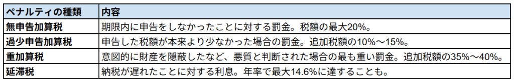 【図表】相続税の滞納・申告漏れに対する主なペナルティ