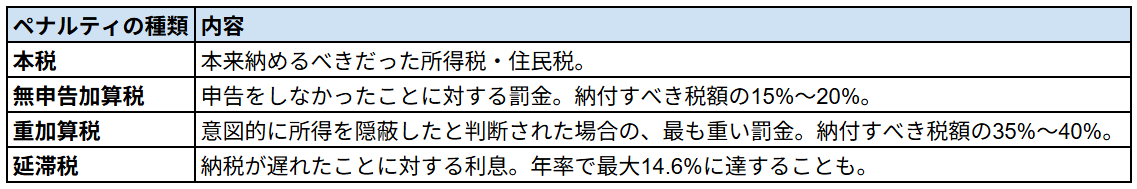 - 無申告が発覚した場合、重い追徴課税というペナルティが待っている。