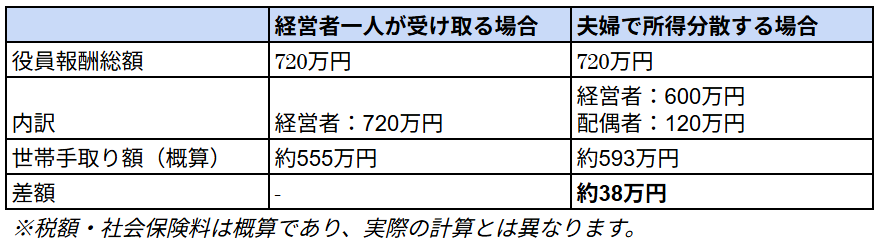 資産管理会社に、生計を同一にする配偶者や子などを役員として迎え入れ(もちろん業務実態が必要です)、役員報酬を支払うことで、所得を家族内で分散できます。これにより、一人ひとりの所得にかかる税率が下がり、世帯全体の手取り収入を増やす効果が期待できます。